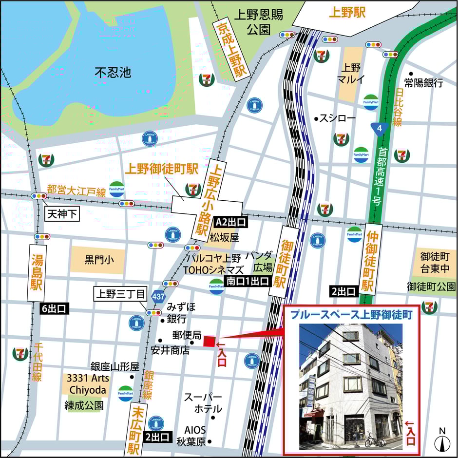 Google Mapにて「ブルースペース上野駅前4A」と入力いただければ場所が出てきます。